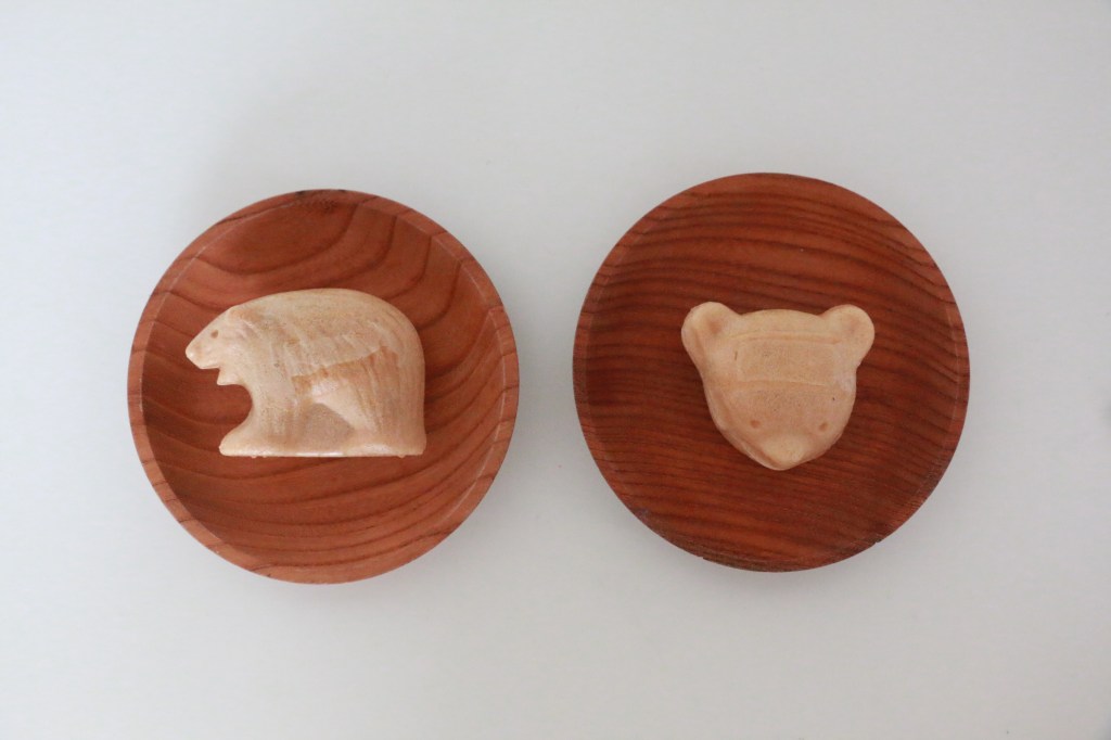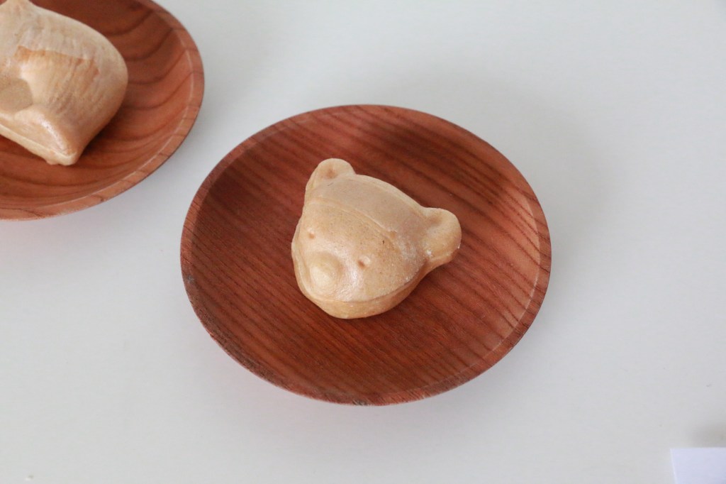 右側が顔型の「こぐま」で、左側が全身の「くま姿」。ありそうでない可愛らしい和菓子にキュンとしちゃいました。(笑)