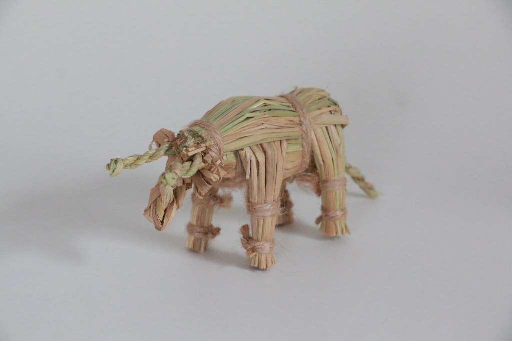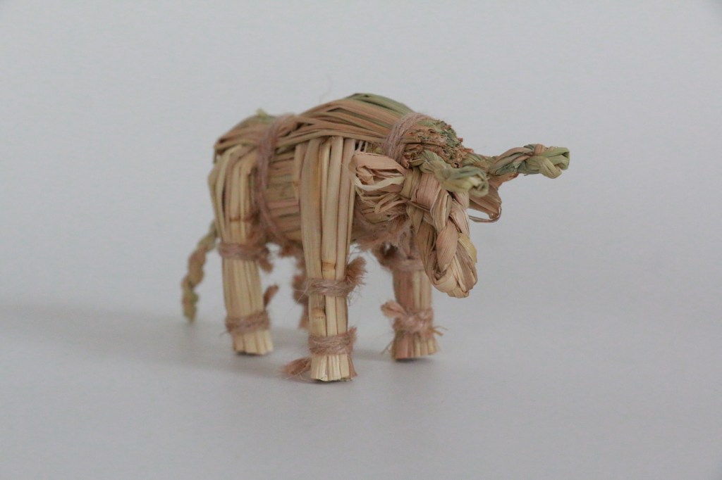 のっそのっそと歩く牛のように、ゆっくり地道に、でも優しく、周囲に癒しを与えられる存在になれたらいいなぁ。そんな温かい気持ちになれる藁細工です。