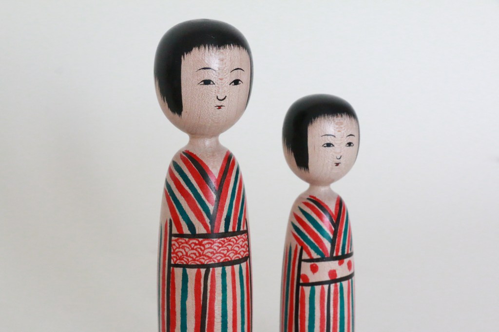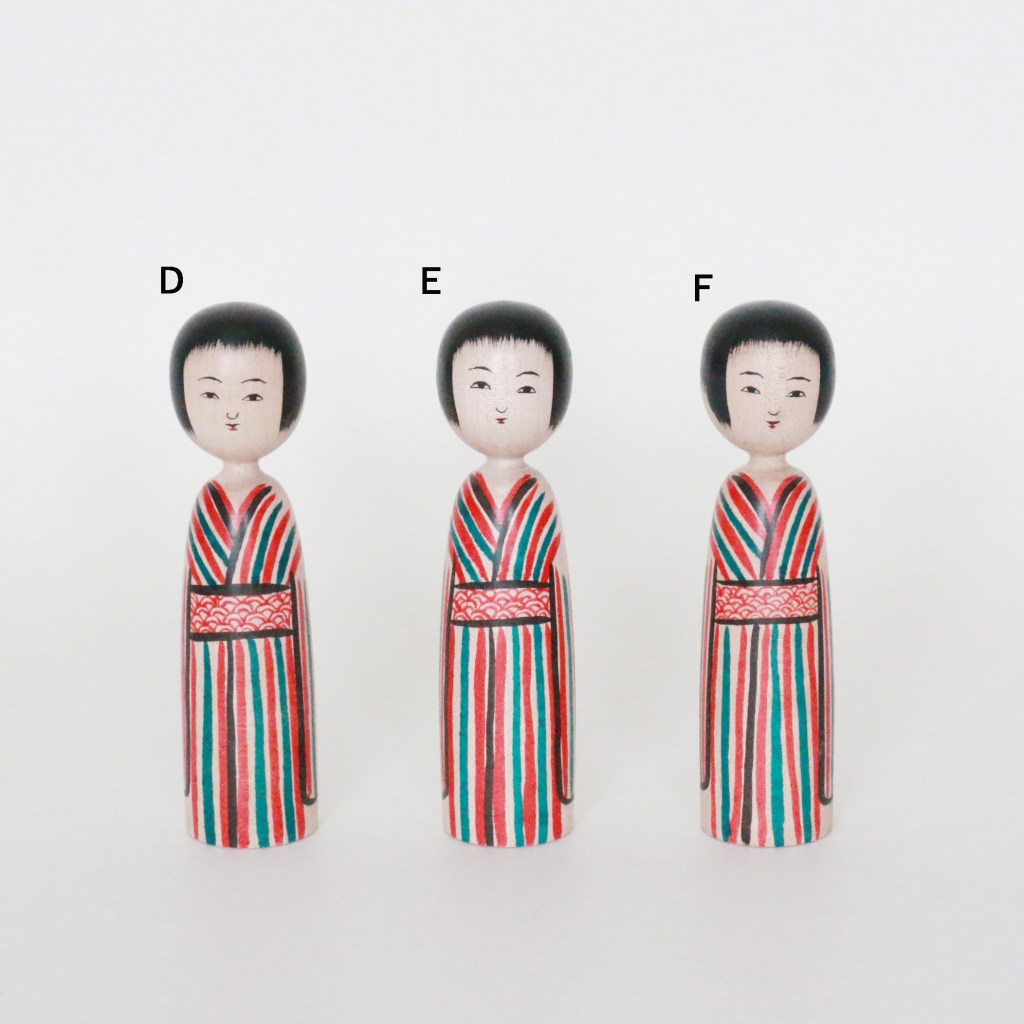 縞模様の着物の可愛いらしい”雄司こけし”たち。