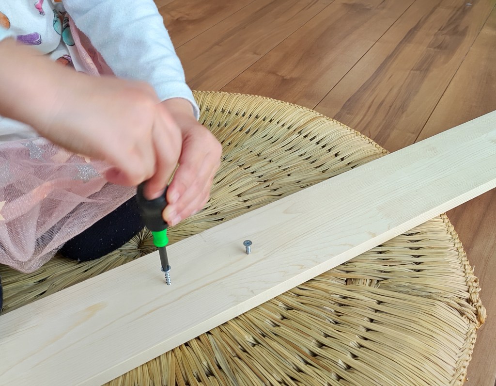 2歳児は挑戦してみて1分くらいで諦めていましたが、初めてドライバーを使った4歳児は、5分くらいで感覚を身に付け、ご飯もそっちのけで何度も何度もネジを回していました。