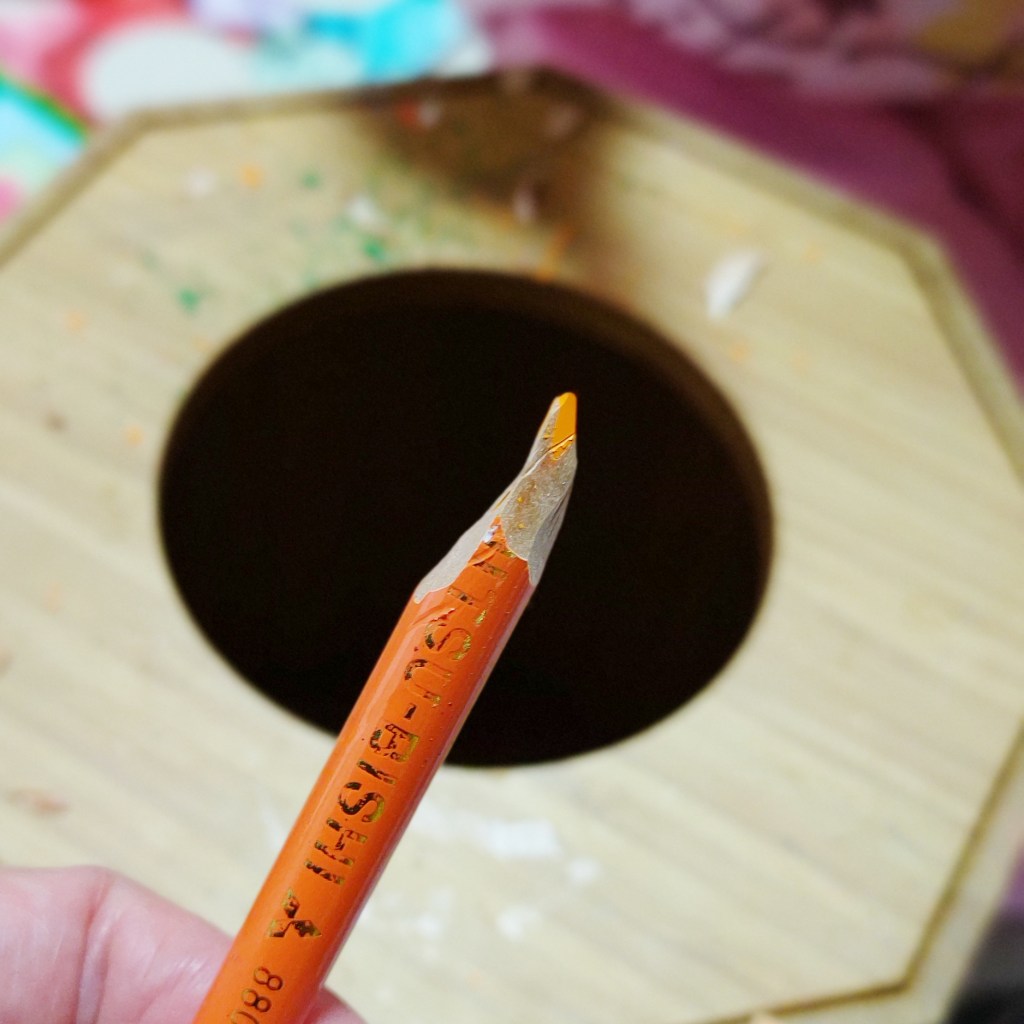 4歳児は鉛筆より色鉛筆の方が日常的なので、色鉛筆研ぎを。ただ色鉛筆は芯が柔らかいので、難易度は少し高めでした。