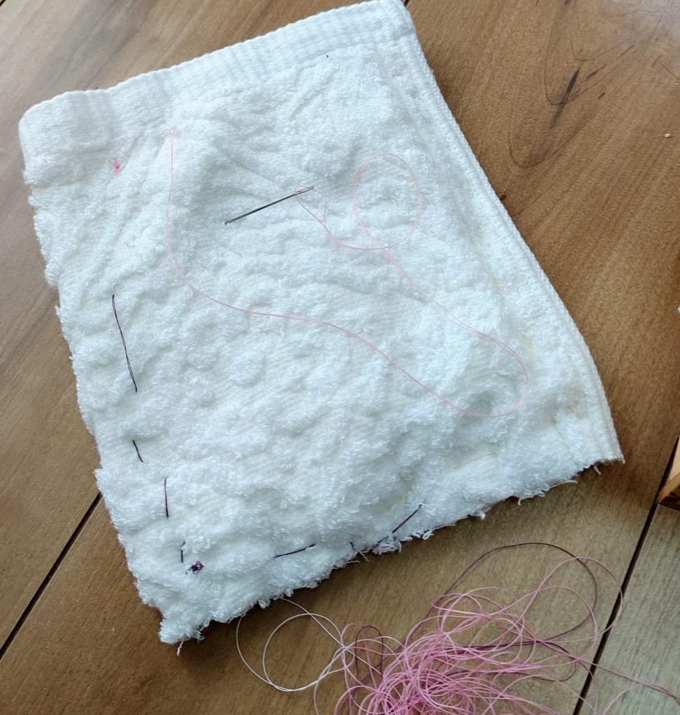 糸で指を切るというアクシデントもあり、私の怒り声で強制終了となりました。針仕事は、まだちょっと早かったようです。