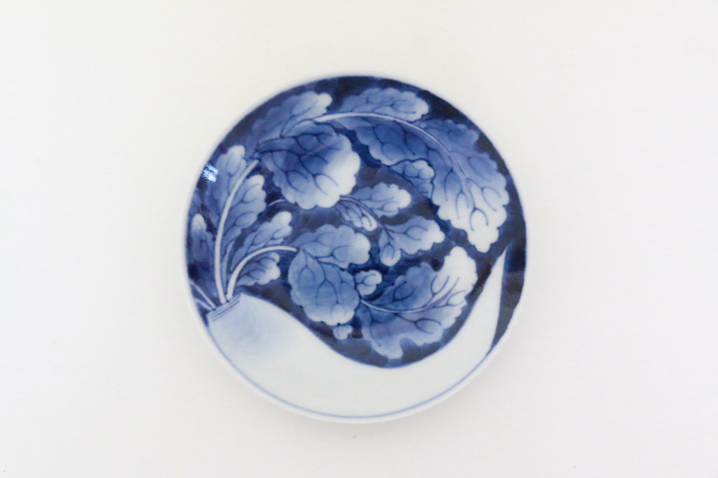 花のように生き生きと描かれた大根は存在感がありますが、料理も美しく引き立ててくれて、使いやすい逸品です。キラキラした感じや、使いやすさは磁器ならではの魅力です。