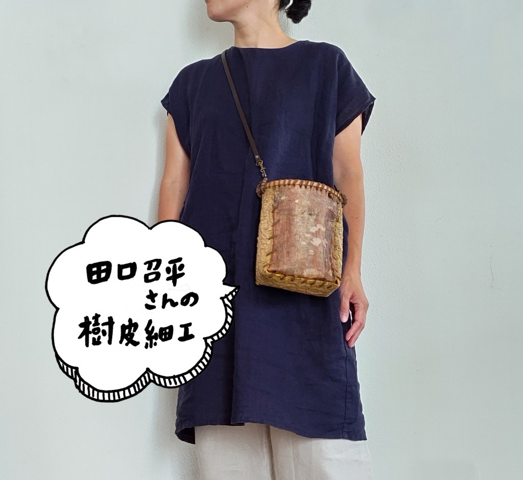 先日、秋田魁新報「ハラカラ」でご紹介した箕づくり職人の田口召平さんに、樹皮細工のポシェットを作っていただきました。