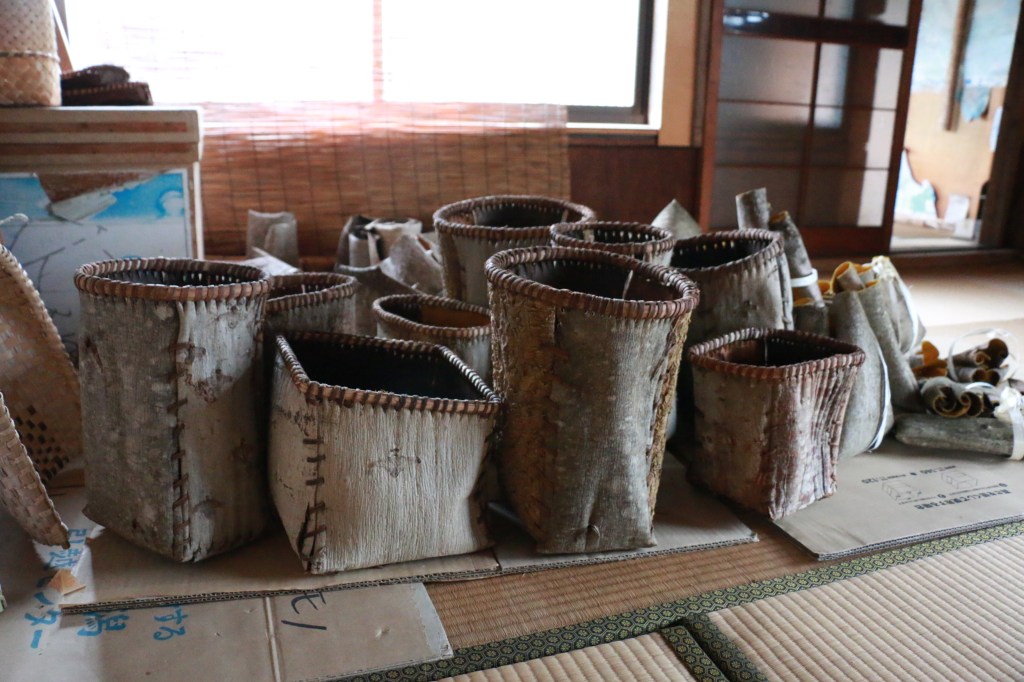 シンプルな造形ですが、木の特性をよく知っていなければ作れない技が随所に見える田口さんの樹皮細工。さすが箕づくりの職人さんだなぁと感心させられます。