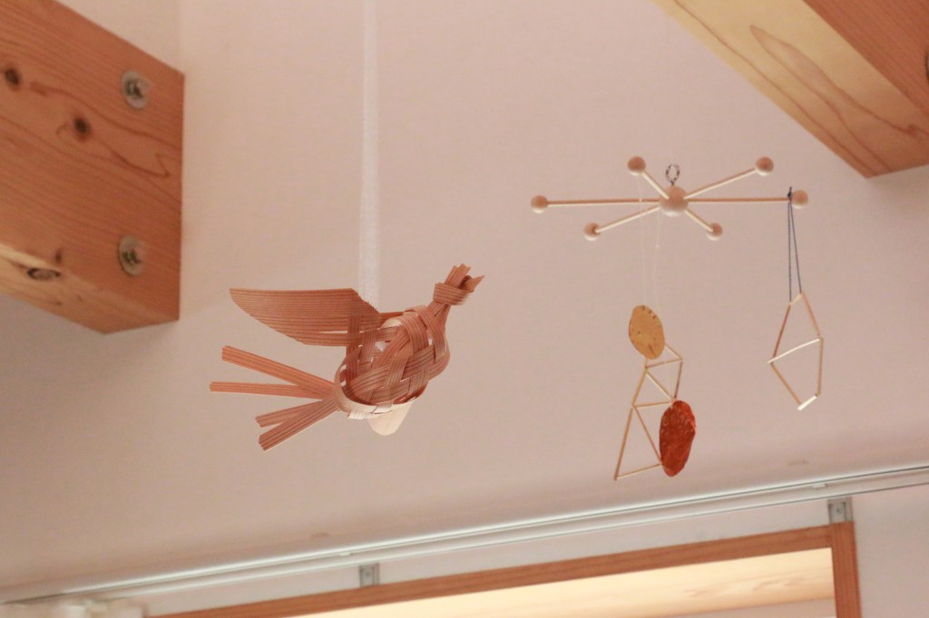 今回は「秋田杉でモビールをつくろう!」というタイトルの通り、ゆらゆら可愛いモビールをつくるワークショップです。