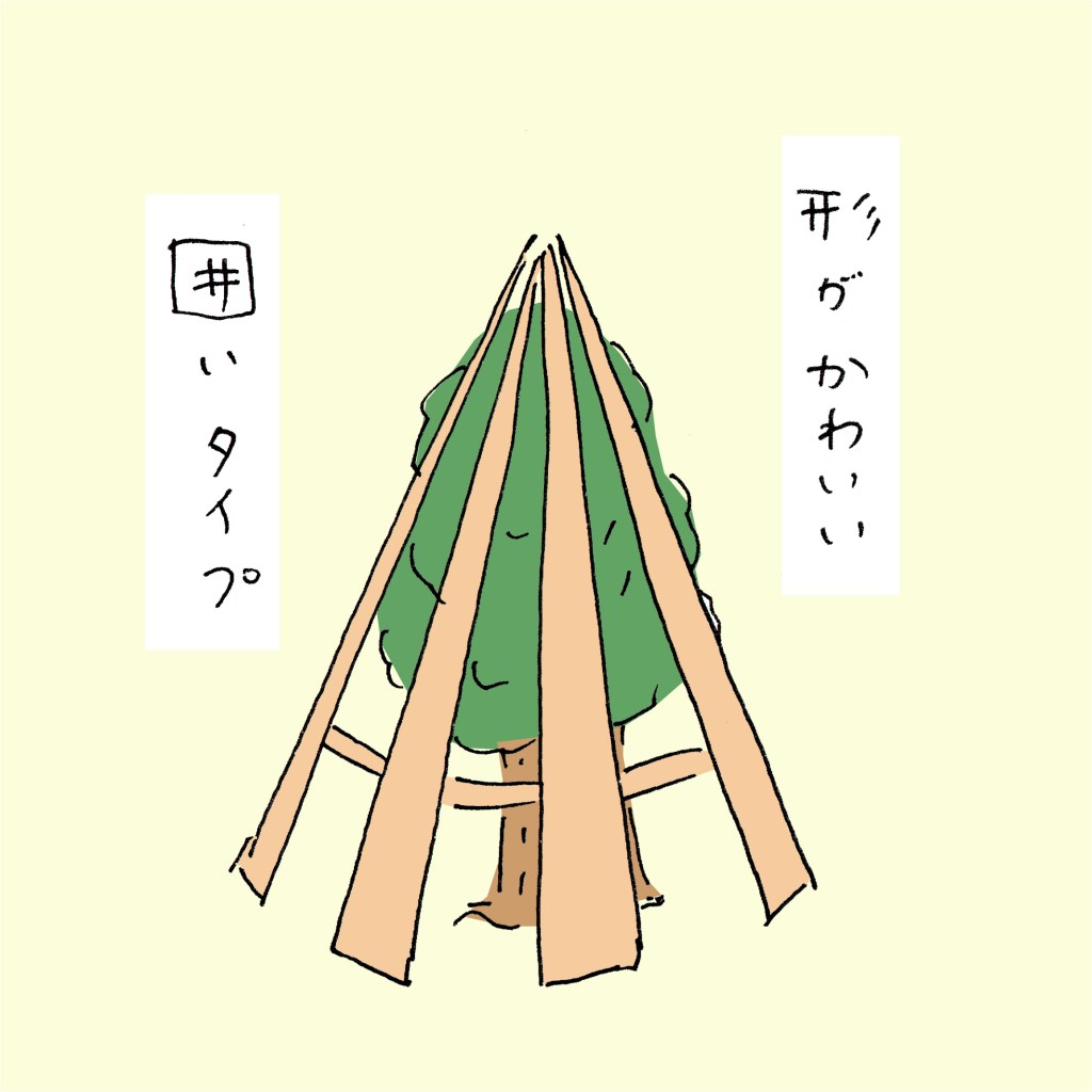 降雪量や木の形状・種類によって雪囲いの構造が異なるのだと思いますが、いずれにせよ、人と自然が共存するためのあたたかな歩みを見せられているような気がして、ほっこりした気持ちになります。
