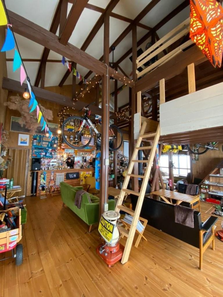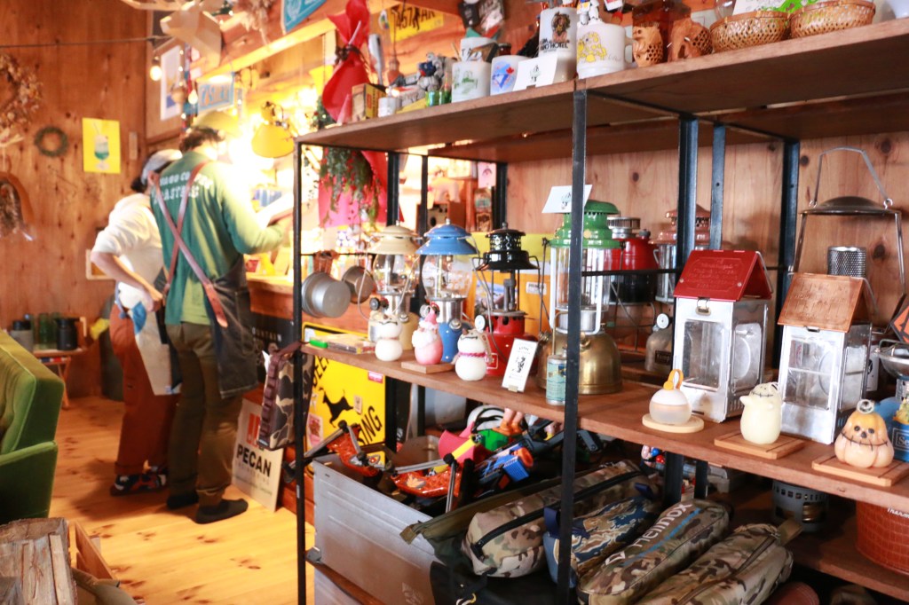 アウトドアが好きなオーナーが集めたアウトドア用品などが所狭しと飾られた店内は、どこを見渡しても楽しいグッズにあふれています。