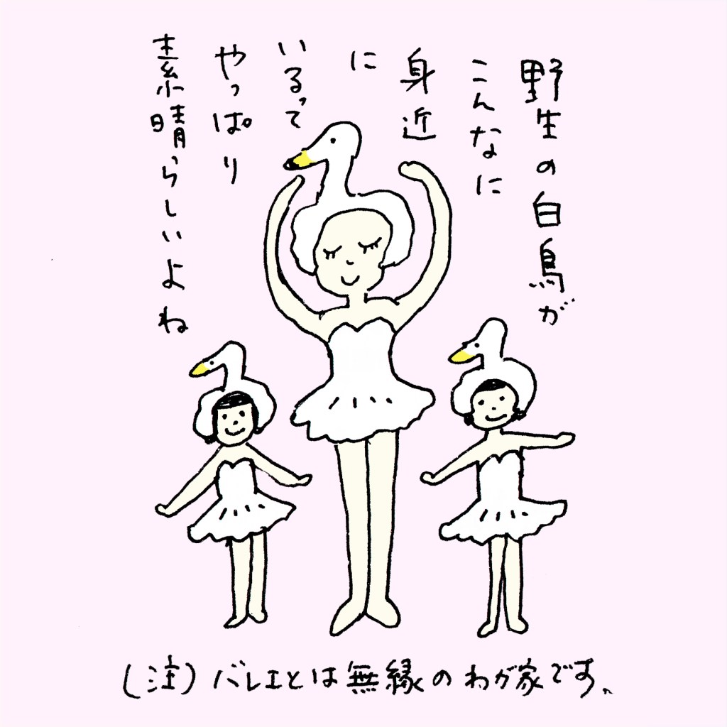 見慣れた光景になってきましたが、それでも野生の白鳥をこんなに身近に感じながら生活できるって、やっぱりすごいことだなぁと思うのです。