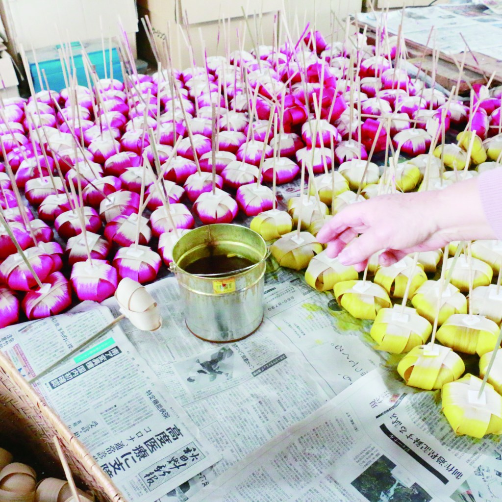 木を削って作られているこの造花は、お墓に供えるための彼岸花として、古くから親しまれてきたもの。