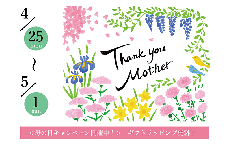 オンラインショップにて、今日から1週間「母の日キャンペーン」を開催します。