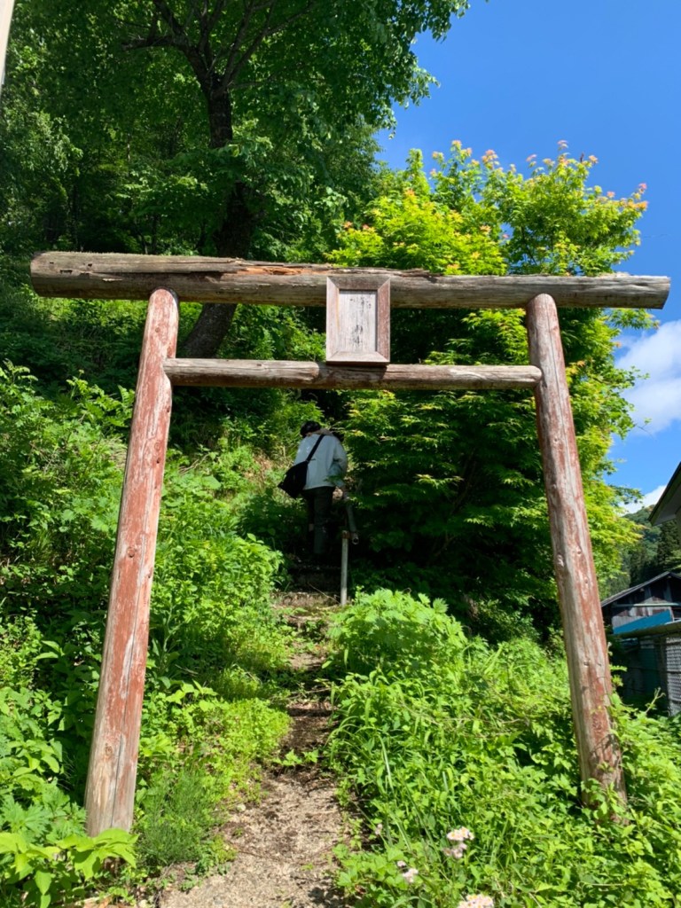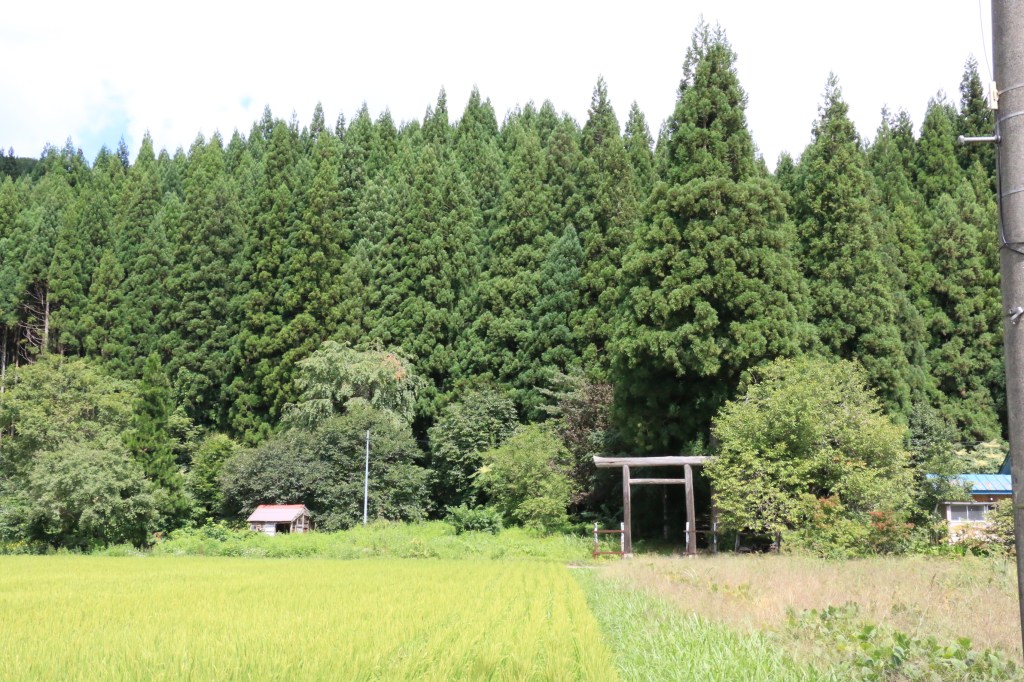 線路を越えて、吉田という集落へ。道すがら案内板などは何もありませんが、森の入口にある小さな鳥居が目印です。