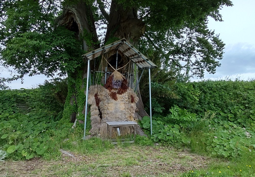 手には鉄パイプで作ったクワのような武器を持ち、お顔も藁で作られています。