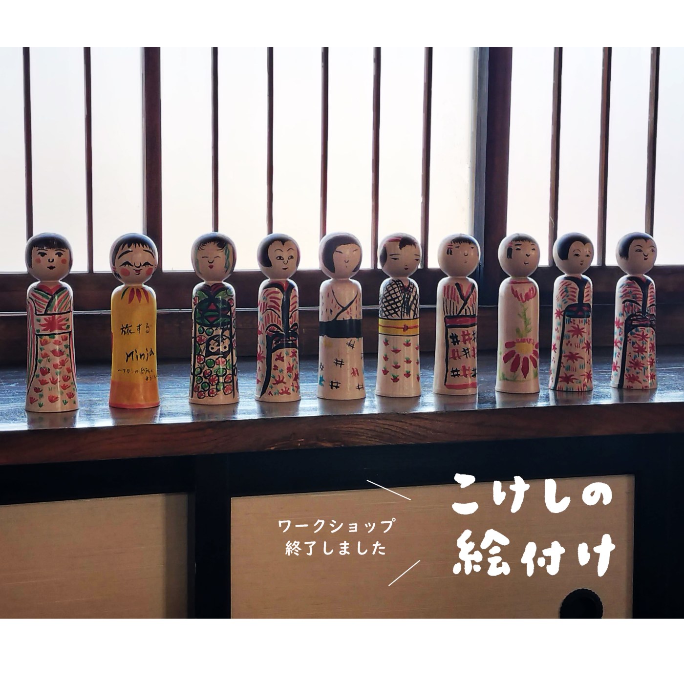 木地山系の伝統型にチャレンジする方や、アレンジを加えた創作こけしを作った方、看板こけしを作った方もいて、それぞれの思いが詰まった個性豊かなこけしたちが出来上がりました!