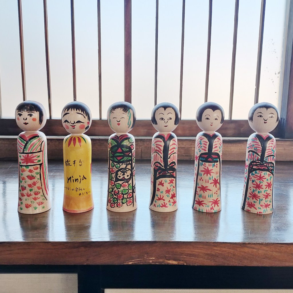 こうして違いを見比べると、形はもちろん、髪型、髪飾り、お顔、着物の模様など、こけしを構成する絵付けの要素が多いことに気付かされます。