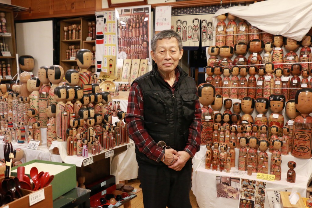 阿部さんは、「阿部始漆器店」と「阿部始こけし店」という二つの看板を掲げるお店の店主。