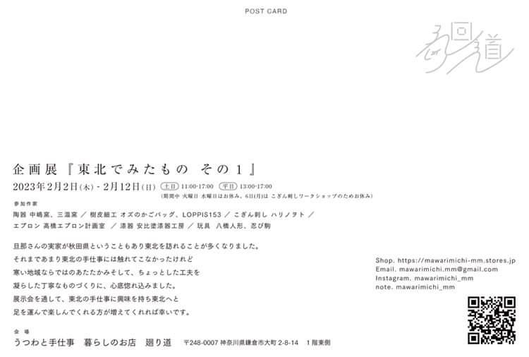 鎌倉にお店を構える廻り道で開催される展示会「東北でみたもの その1」に参加させていただきます。