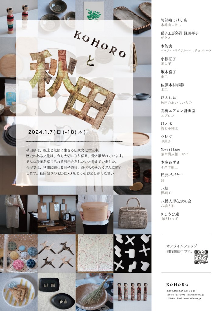 2024年1月7日から、KOHORO・二子玉川店(東京)で「コホロと秋田」展が始まります。