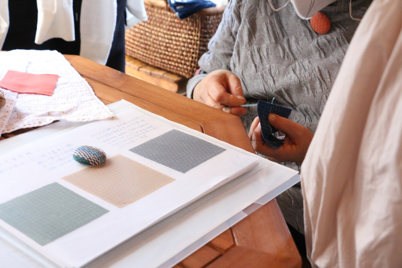 今回のワークショップは、こんな刺し見本も小松さんが用意してくれました。なんと20種類以上!