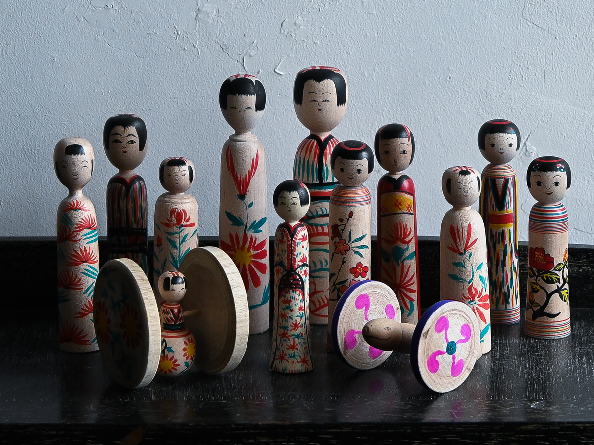 こちらのコーナーでは、高橋一成さんの手になる木地山こけし、