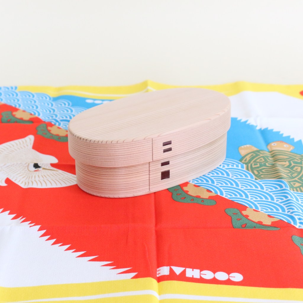 曲げわっぱとの相性抜群なので、オンラインショップではセット販売もしておりますが、こちらは福コチャエ風呂敷「富士山」。