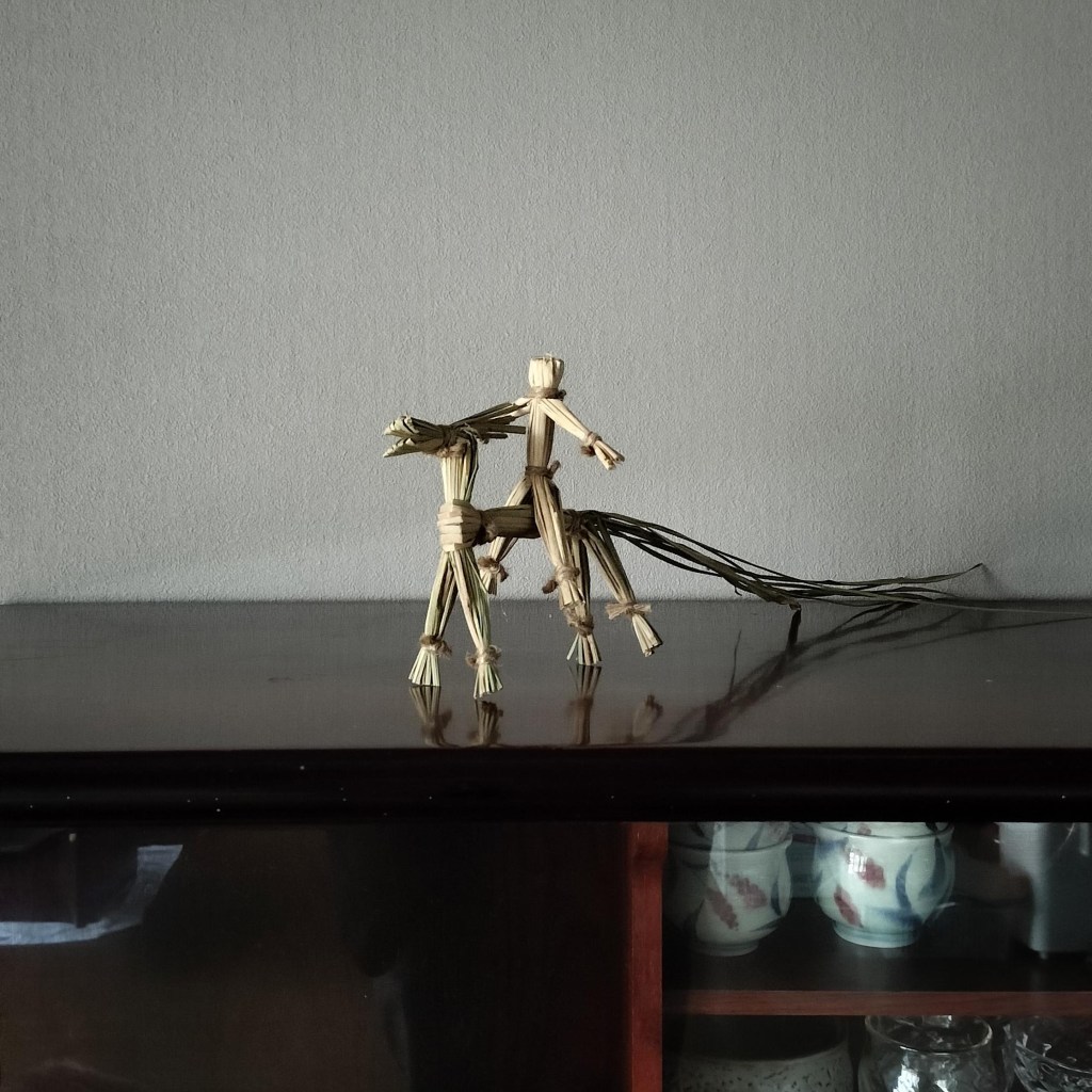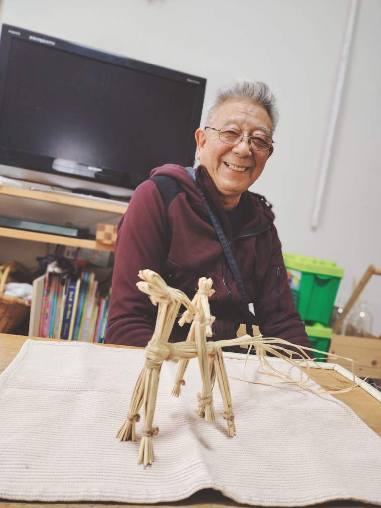藁の素材は手に優しく、ほのぼのとしたあたたかさを暮らしにもたらしてくれるので、しめ飾りだけでなく、暮らしに藁細工がもっと馴染んでいくいいなという願いも、この馬に込めています。