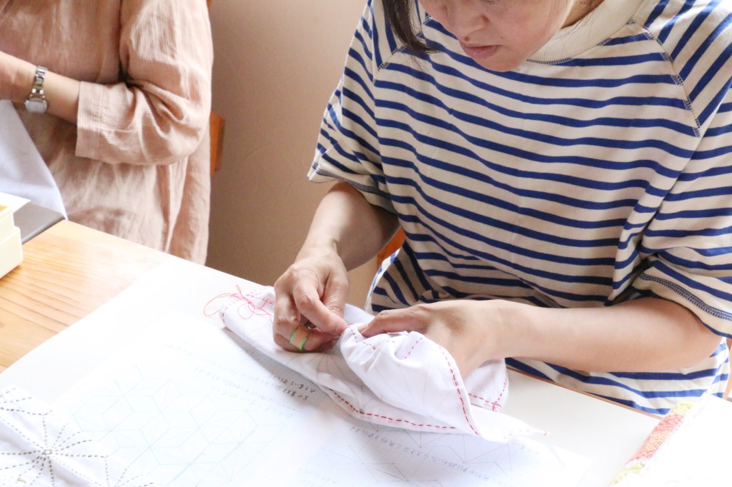 これはあくまで私の体感ですが、手仕事ワークショップで「あ〜楽しかった」と感じられるのは、2時間がベスト。刺し子のワークショップは、それを遥かに飛び越えて4時間半の長丁場となりますので、集中力を維持できる力や、諦めない心が求められます。
