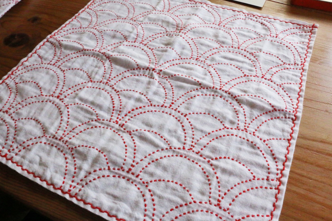 5月に習った麻の葉文様を家でしっかり完成させ、さらに自主練をした刺し子ふきんを6月の回に持ってきてくれました。心地よいリズムの針目が安定していて、素晴らしいです。