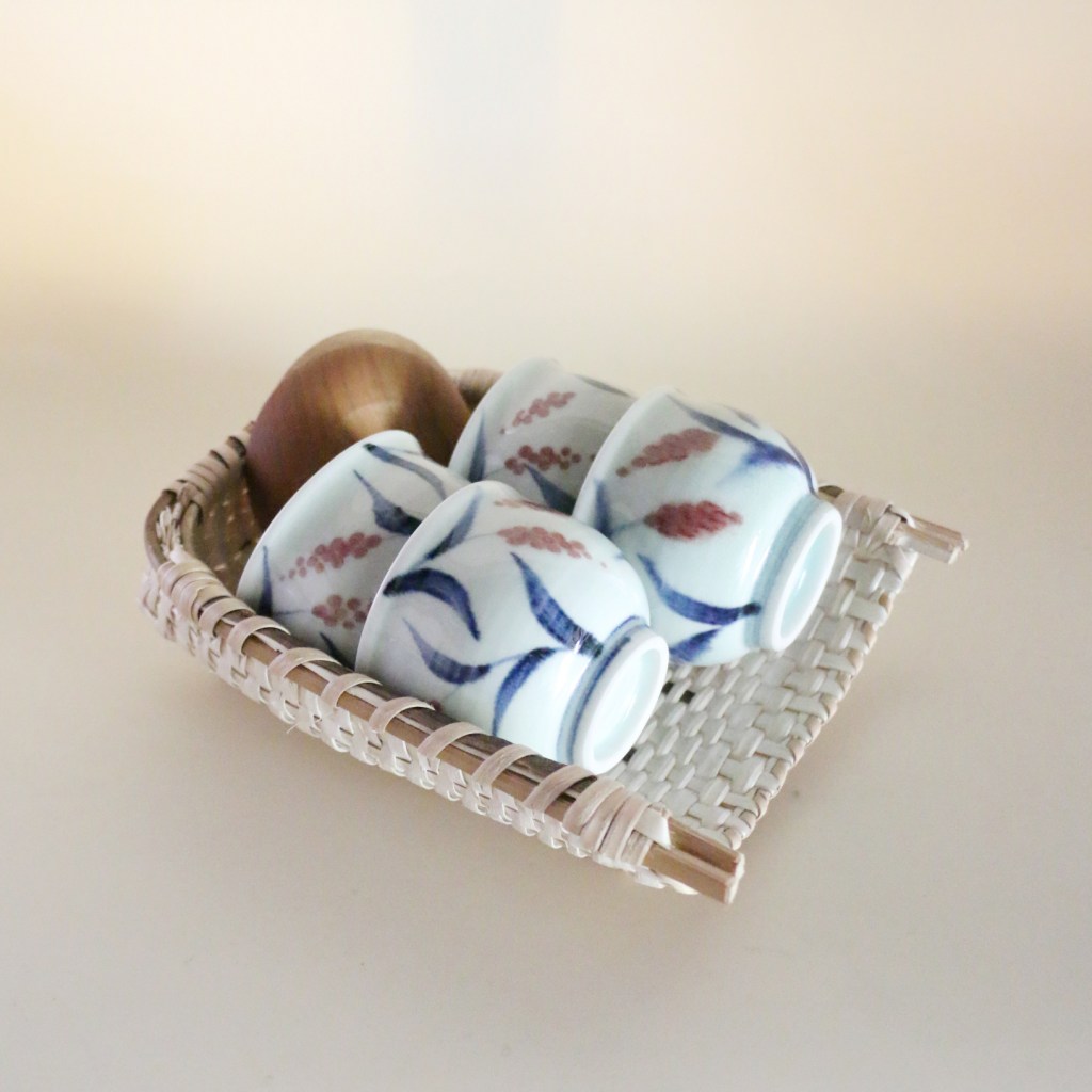 「箕菓子器」とは、箕(み)をギュッと小さくしたカゴのことで、菓子や小さな湯呑みを入れて使います。