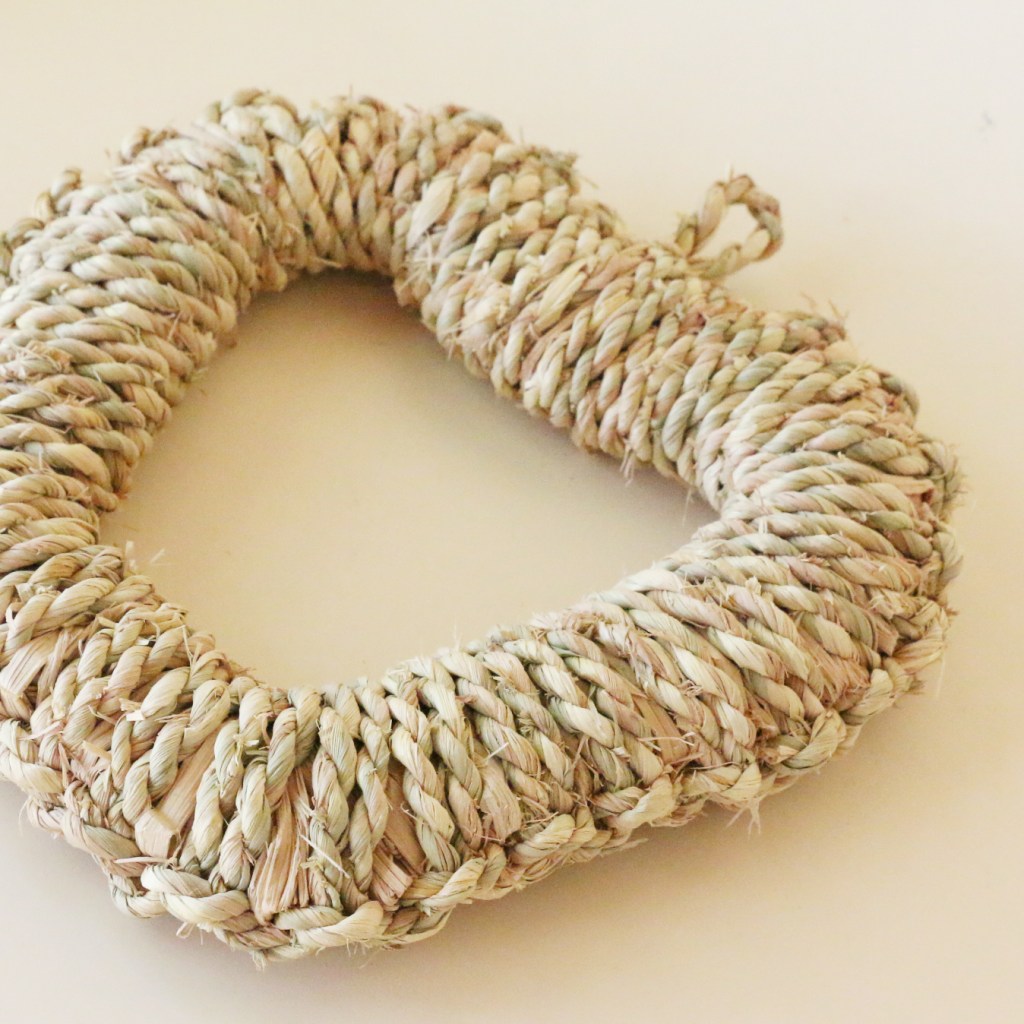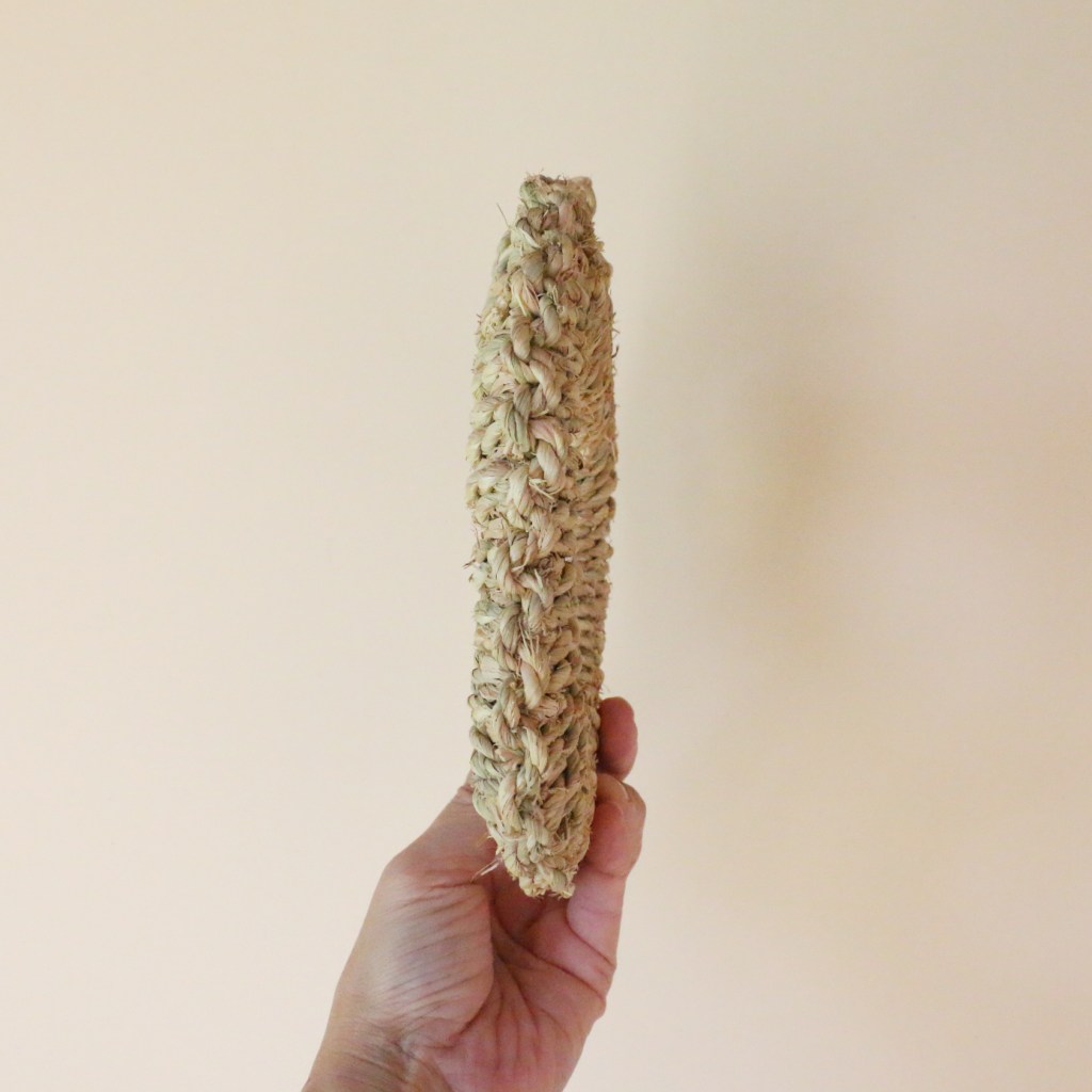 厚みは、丸型と同じく2.5cmくらい。使いやすさを考慮し、できるだけ薄くしてもらいましたが、綯ったわらで編んでいるのでこれが限界です。でも使用中、厚みはそれほど気になりません。