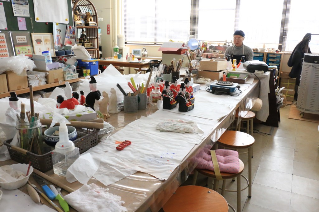 梅津さんは、新聞記者時代に取材を通して八橋人形と出合い、郷土玩具の蒐集家として知見があったこと、長年日本画を描いてきて絵心と技術があったこと、地元の繋がりやタイミングなど、さまざまな要因が奇跡的に重なり、八橋人形を継ぐことになりました。