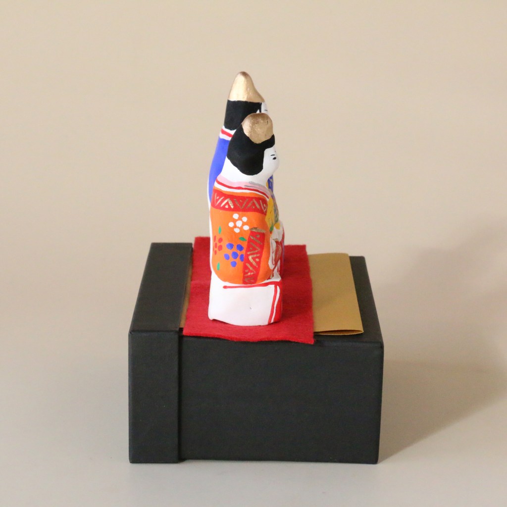 このひな人形は、原型から製作した2026年の新作で、お内裏様もお雛様も高さ10センチほどの小さなサイズです。