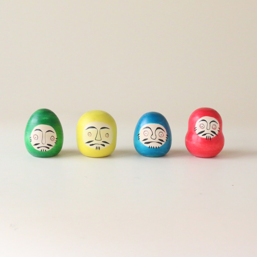 種類は、赤、青、黄色、緑の4つ。それぞれ顔やかたちが微妙に違います。