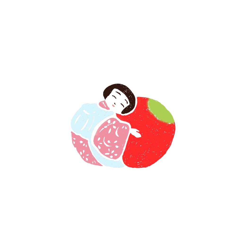 今回は、そのなかでも思い入れのある土人形「りんご抱きっこ」をイラストにして、名刺お入れしました。紙も少し存在感のあるものをということで、新雪のような白さと画用紙のようなあたたかみのある紙を選びました。